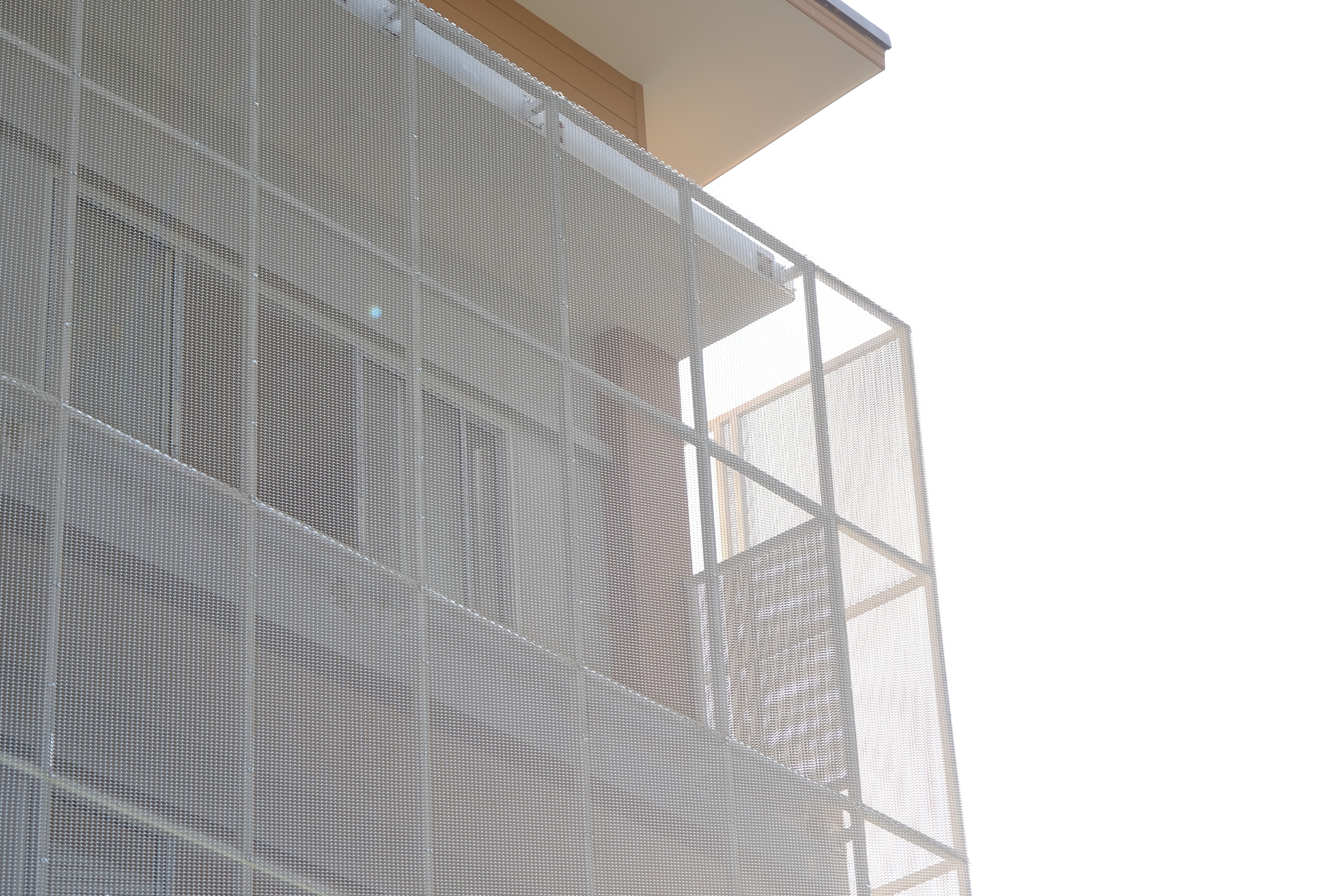 ฟาซาดโรงเรียนอัสสัมชัญ หัวหมาก รูปแบบวัสดุอลูมิเนียมเจาะรูกลม อบสีขาวพิเศษ ความหนาของแผ่น ที่แข็งแรง